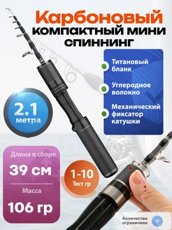 Компактный карбоновый мини спиннинг 2,1 м, тест 1-10гр