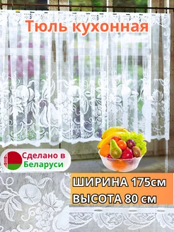 Тюль на кухню короткий готовый с рисунком фруктов 175-80