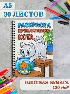 Раскраска про кота для взрослых и детей А5 на пружине