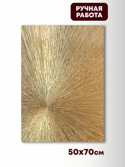 Картина Золотые лучи на холсте 50х70 текстурная паста поталь