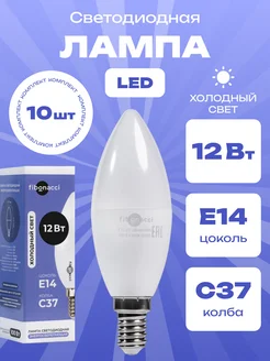 Светодиодная лампа Е14 12Вт колба С37 Холодный свет 10шт