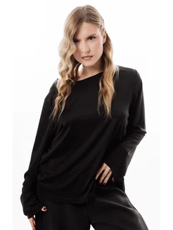 Лонгслив оверсайз черный базовый кофта с длинным рукавом