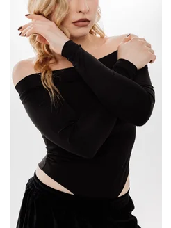 Боди с длинным рукавом и открытыми плечами