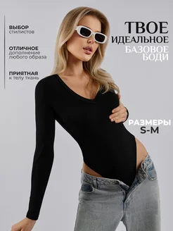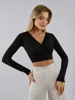 Лонгслив укороченный с V-вырезом длинным рукавом базовый