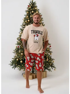 Пижама с шортами и футболкой хлопковая новогодняя