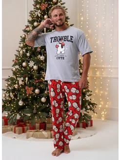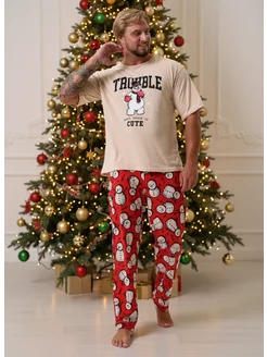 Пижама со штанами и футболкой хлопковая новогодняя