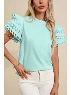 Блузка ментоловая с кружевными рукавами колокольчик