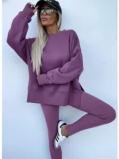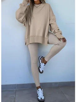 Трикотажный костюм леггинсы и свитшот оверсайз