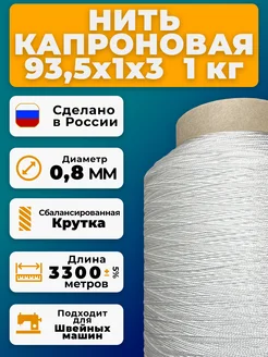 Нить капроновая крученая 93,5х1х3 Белая 1 кг 3300 м