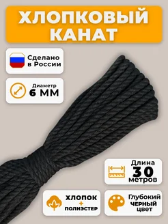 Хлопковый канат Черный 6 мм 30 м для рукоделия и творчества