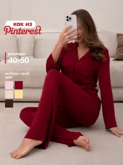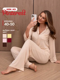 Домашняя пижама со штанами и рубашкой с длинным рукавом