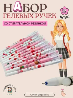 Набор гелевых ручек с ластиком, 12 шт