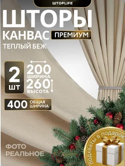 Шторы в спальню для гостиной плотные канвас 200х260 см 2 шт