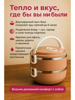 Ланч-бокс удерживающий тепло для еды, 2 яруса