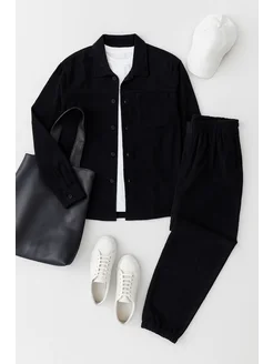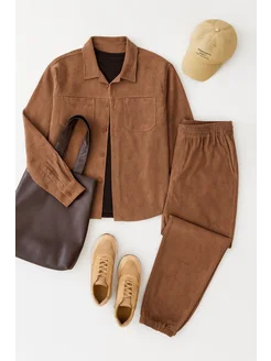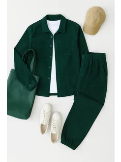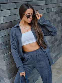 Костюм спортивный вельветовый оверсайз с рубашкой