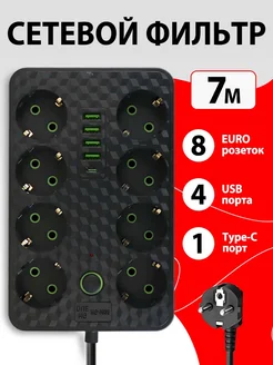 Сетевой фильтр удлинитель 7 метра 8 розетки 4 USB