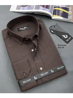Приталенная рубашка на кнопках, с воротником на пуговицах