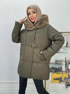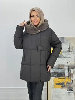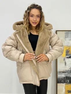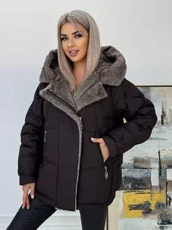 Куртка зимняя теплая с капюшоном и мехом под норку