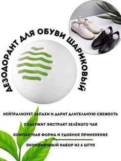 Дезодорирующие шары для обуви с ароматом зелёного чая, 6 шт