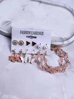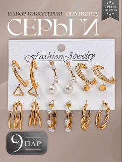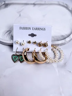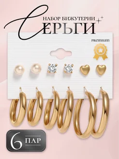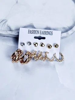 Серьги набор 6 пар бижутерия кольца гвоздики