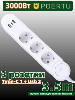 Сетевой фильтр Удлинитель с USB и Type-c 3.5 м