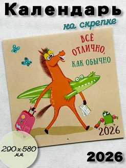 Календарь 2026 настенный перекидной на скрепке, 290*580 мм