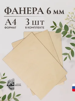 Фанера А4 6мм для трудов, выжигания и творчества. 3 шт