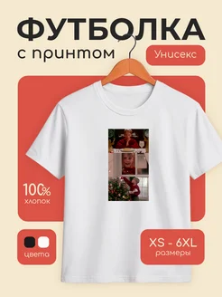 Новогодняя футболка оверсайз с принтом Один дома