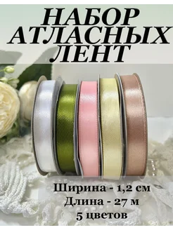 Лента атласная набор 1,2 см упаковочная для рукоделия 5 шт