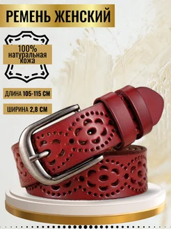 Ремень бордовый женский кожаный перфорацией для платья джинс