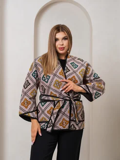 Куртка кимоно с поясом стеганая