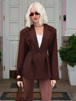 Приталенный пиджак удлиненный шоколадный