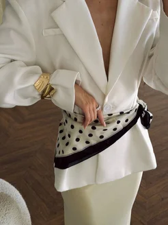 Приталенный пиджак белый укороченный с поясом