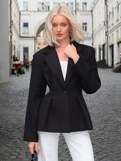 Приталенный пиджак черный с баской