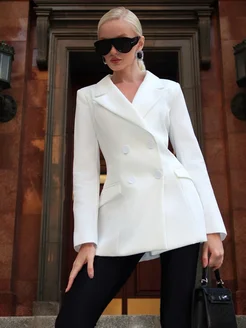 Приталенный пиджак белый двубортный
