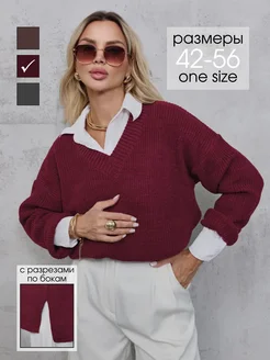 Свитер вязаный удлиненный с вырезом