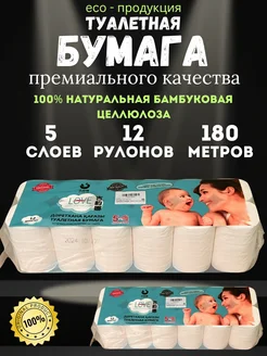 Туалетная бумага LOVE 5 слоев 12 рулонов натур. целлюлоза