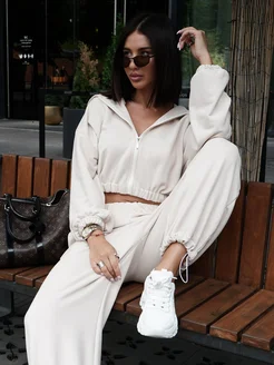 Спортивный костюм на молнии с капюшоном осенний брючный