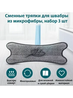 Сменные тряпки для швабры из микрофибры, набор 3 шт