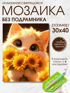 Светящаяся алмазная мозаика без подрамника 30х40 Котёнок