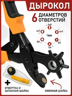 Дырокол пробойник для кожи и ткани, люверсов, ремня, шорник