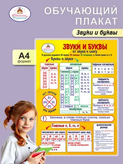 Обучающий плакат для детей Буквы и звуки