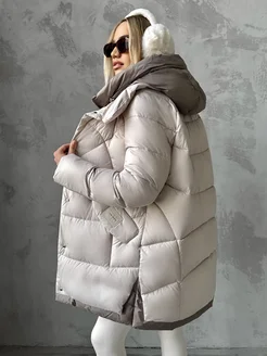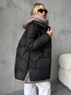 Куртка пуховик зимняя оверсайз с капюшоном теплая