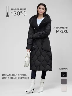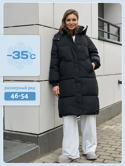 Парка пуховик пальто удлиненный стеганный с капюшоном