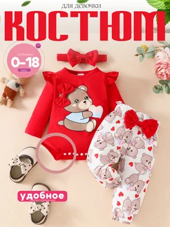 Боди для новорожденных со штанами с мишкой и бантом подарок
