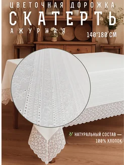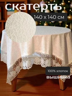 Скатерть белая тканевая из натурального хлопка с кружевом