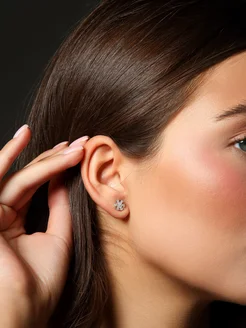 Снежинка - серьги серебро 925 пробы с белыми камнями