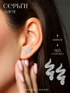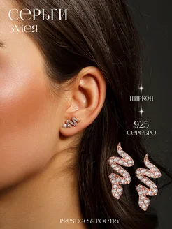 Змеи - серьги-гвоздики серебро 925 с позолотой