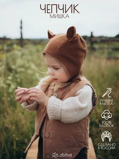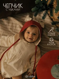 Чепчик с ушками, шапка из фланели детская
