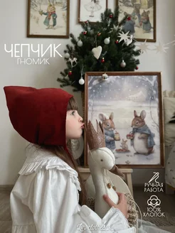 Чепчик гномик, новогодняя шапка из микровельвета детская